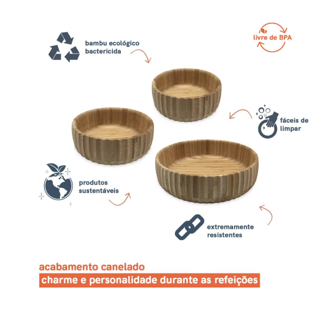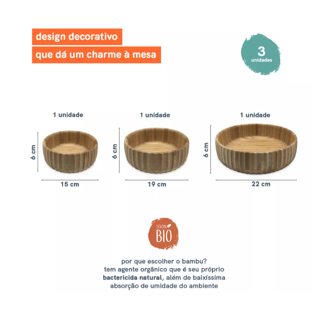 Kit Bowl Canelado de Bambu Oikos – 3 Peças